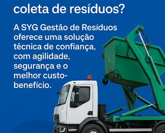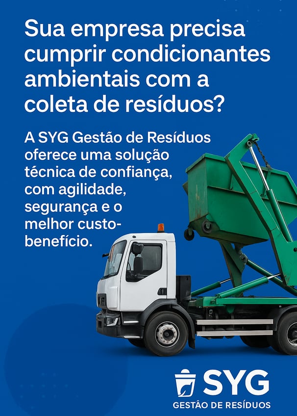 A SYG Gestão de Resíduos oferece soluções técnicas de confiança para destinação de resíduos sólidos, atendendo às exigências e condicionantes ambientais com eficiência, segurança e o melhor custo-benefício. Atuamos com responsabilidade ambiental e agilidade, garantindo conformidade legal para empreendimentos de diversos setores. Entre em contato e descubra como podemos auxiliar sua empresa a cumprir suas obrigações ambientais com excelência